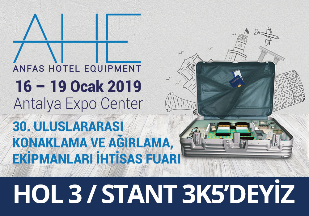 16 - 19 Ocak 2019 tarihleri arasında, ANFAŞ otel ekipmanları fuarındayız.